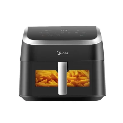 ميديا مقلاة هوائية MF-CY85WK، وايدماكس +30%، اعدادات مسبقة بلمسة واحدة، تقنية هيت اكسبريس، زيادة 57% في كفاءة الطهي، شفافة من خلالها، غلاف داخلي معدني، طلاء خالٍ من الفلور، امنة وصحية، 9 لتر، اسود