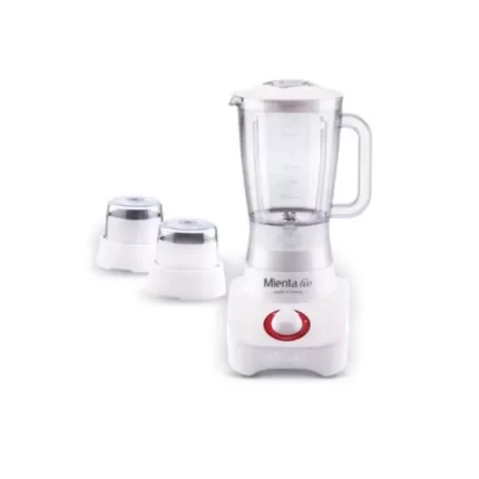 عدد 3 قطع “دورق + 2 مطحنة” . أسلحة حادة من الإستانلس الغير قابلة للصدأ . دورق شفاف ضد الكسر سعة 1.5 لتر . غطاء الدورق مؤمن لضمان عدم الفتح أثناء التشغيل . خامات من البلاستيك مطابقة للمواصفات العالمية . موتور قوي 1800 لفة/دقيقة . فلتر لتصفية العصير . الجهد : 220 فولت . التردد : 50 هرتز . الطاقة : 360 وات . موتور لا يحترق مزود بفيوز أمان .